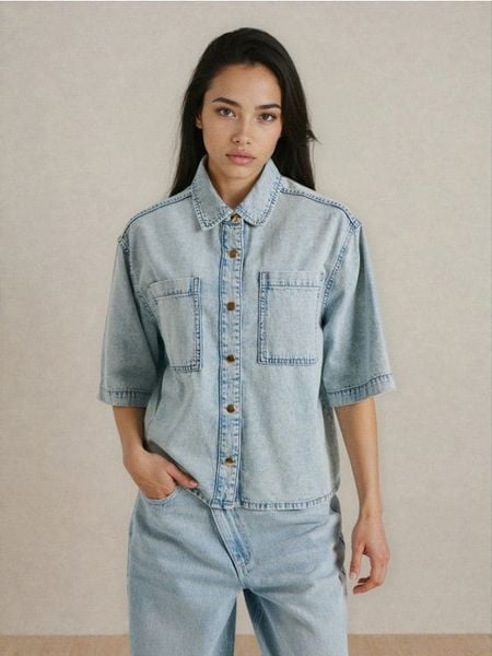 Jeansowa koszula z krótkim rękawem – niebieski