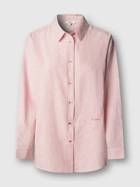 – z dodatkiem lnu- kołnierz: kent- zapięcie: listwa guzikowa- zakończenie rękawów: mankiet na guzik- detale: haft z logo- krój: prosty- wzór: paski