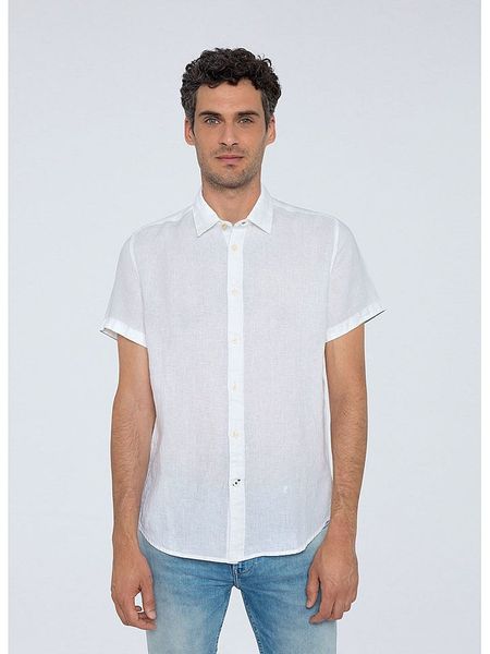 – czysty len- fason: regular fit- kołnierz: kent- zapięcie: listwa guzikowa- dolny brzeg: zaokrąglony z tyłu- wykończenie: delikatnie prześwitujące- look: jednokolorowy