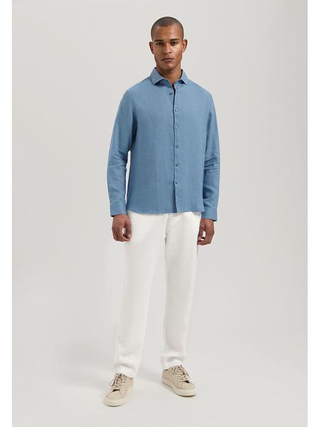 – czysty len- kołnierz: kent- zapięcie: listwa guzikowa- zakończenie rękawów: mankiet na guzik- długość rękawa: długi- krój: prosty- detale: haft z logo- look: jednokolorowy