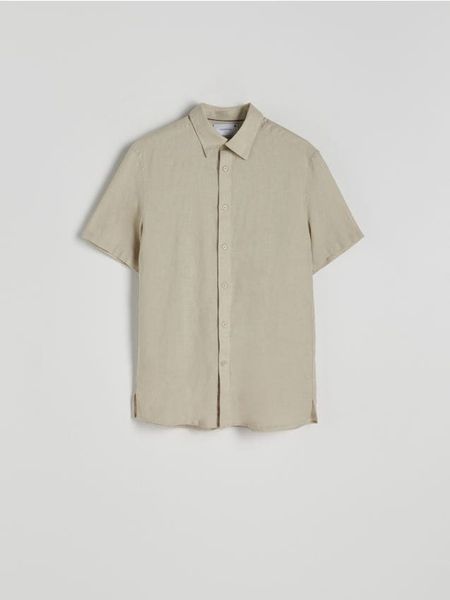 Koszula regular fit z lnem – beżowy
