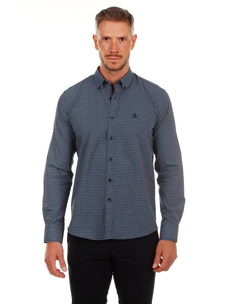 – czysta bawełna- kołnierz: button-down- zapięcie: listwa guzikowa- zakończenie rękawów: mankiet na guzik- długość rękawa: długi- dolny brzeg: zaokrąglony- krój: prosty- detale: haft z logo- wzór: kratka