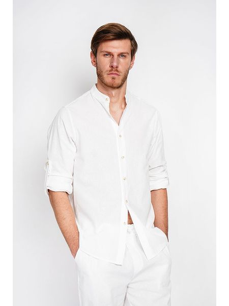 Koszula Casualowa, Biała ze Stójką i Guzikami, Jednokolorowa, Męska VIP STENDO