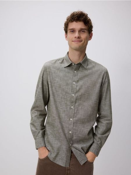 Koszula o regularnym kroju, wykonana z bawełnianej tkaniny.