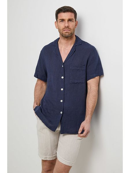 – czysty len- kołnierzyk: z klapami- dekolt: V- zapięcie: listwa guzikowa- długość rękawa: krótki- kieszenie: na piersi- dolny brzeg: z rozcięciem- krój: luźny- look: jednokolorowy