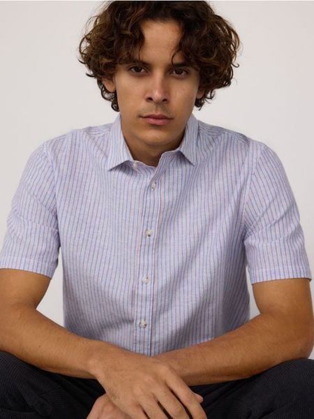 Koszula regular z lnem – wielobarwny