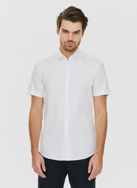 Koszula męska biała gładka z krótkim rękawem. Fason slim
