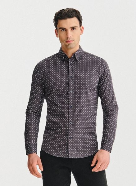 Koszula męska mikrowzór – Pako Lorente. Koszula długi rękaw. Skład: 97% bawełna, 3% elastan. Ciemna koszula Slim. Jesienna koszula męska.