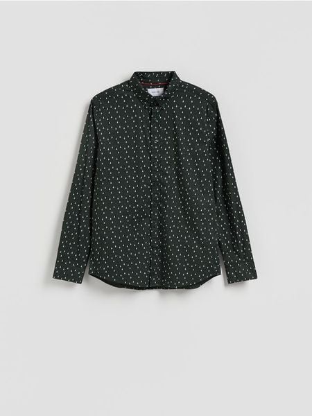 Koszula slim fit w świąteczny wzór – ciemnozielony