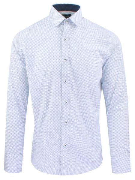 Męska Koszula, Taliowana (Slim Fit) – Rigon – Biel, Wzór