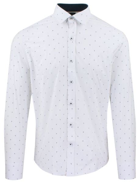 Męska Koszula, Taliowana (Slim Fit) – Rigon – Biała, Delikatny Wzór