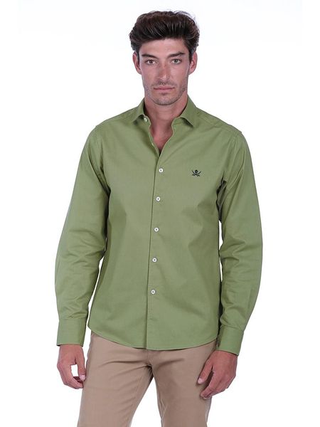 Bawełniana męska koszula z kieszenią REGULAR FIT - oliwkowa V2 - Rozmiar: L