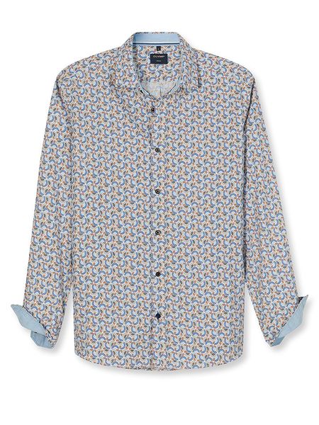 – czysta bawełna- fason: regular fit- kołnierz: kent- zapięcie: listwa guzikowa- zakończenie rękawów: mankiet na guzik- wzór: na całości