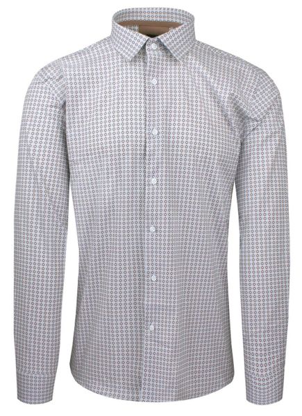 Koszula z Długim Rękawem, Biała w Brązowy Wzór, Prosty Krój, Wizytowa, Bawełniana -VICTORIO