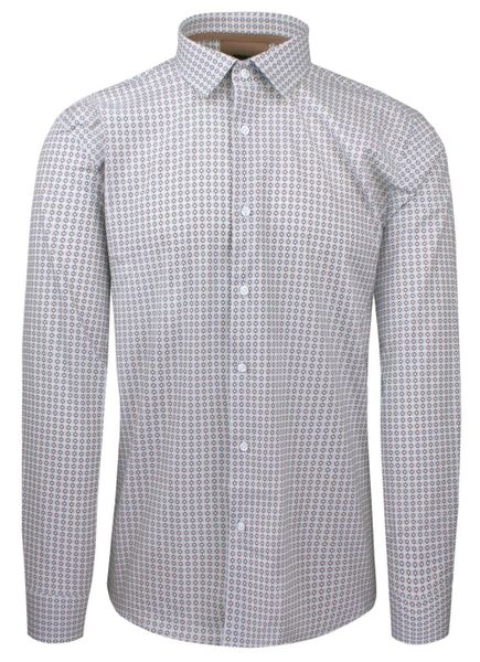 Koszula z Długim Rękawem, Biała w Brązowy Wzór, Prosty Krój, Wizytowa, Bawełniana -VICTORIO