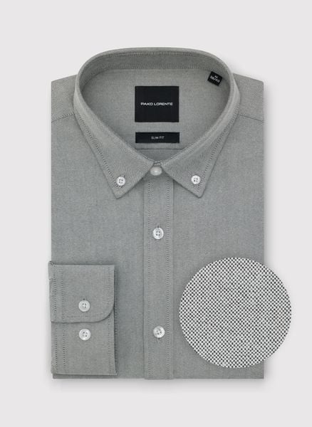 Szara koszula męska – Pako Lorente. Koszula z długim rękawem. Skład: 65% bawełna, 35% poliester. Fason Slim. Online Only. Kołnierzyk button down.