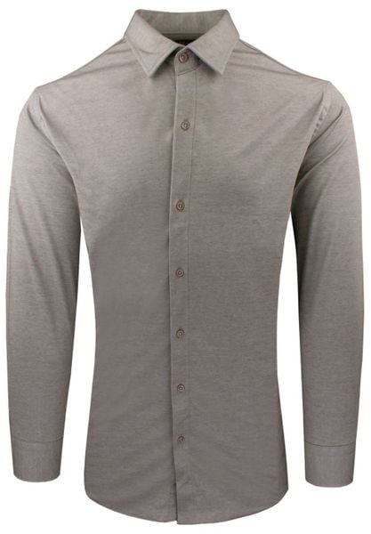 Męska Koszula z Dzianinowej Tkaniny – Krój Taliowany – Ciemny Beż