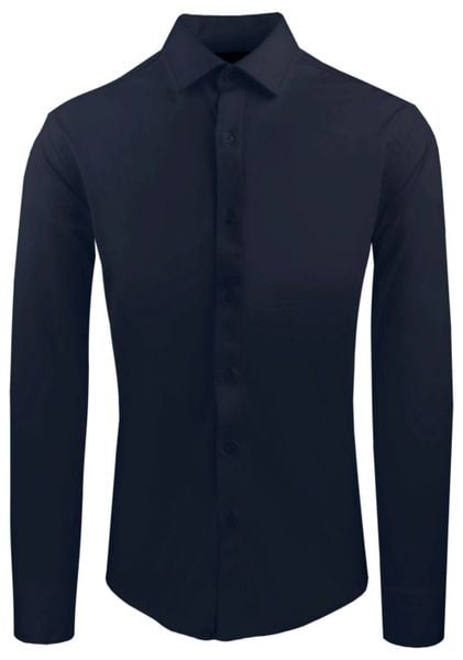 Męska Koszula z Dzianinowej Tkaniny – Krój Taliowany – Granat