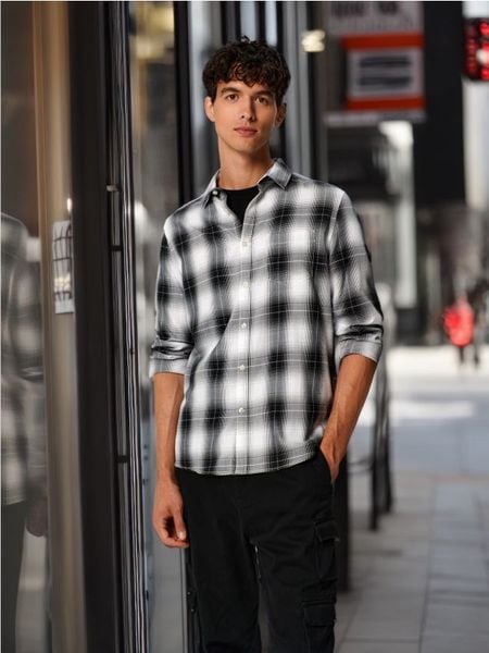 Koszula w kratę o kroju slim fit z kieszonką na piersi.