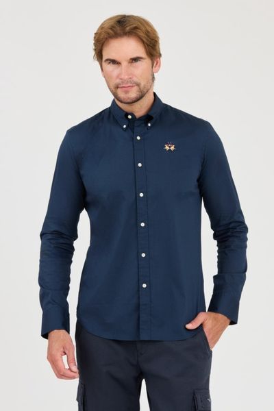 LA MARTINA Granatowa męska koszula Poplin Stretch, Rozmiar XXL