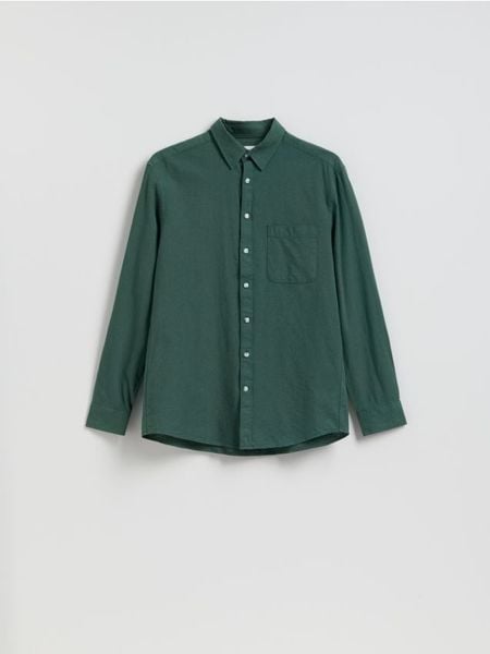 Koszula o regularnym kroju, wykonana z tkaniny z lnem.