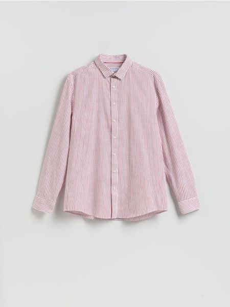 Koszula o regularnym kroju, wykonana z bawełnianej tkaniny.