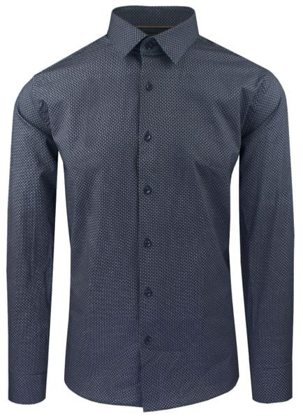 Taliowana Koszula Męska – Victorio – Drobny Wzór, Granat