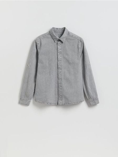 Koszula o regularnym kroju, wykonana z denimu.