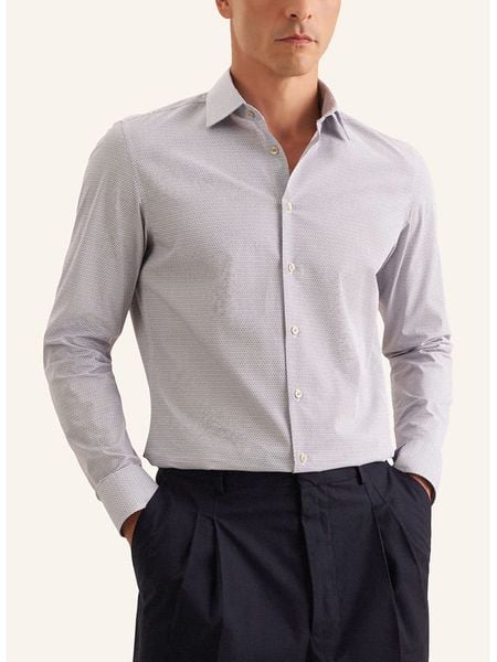 – czysta bawełna- kołnierz: kent- zapięcie: listwa guzikowa- zakończenie rękawów: mankiet na guzik- długość rękawa: długi- dolny brzeg: zaokrąglony- krój: wąski- wzór: na całości