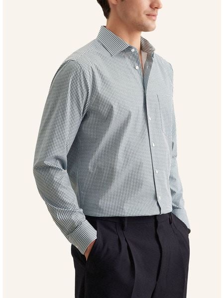 – czysta bawełna- kołnierz: kent- zapięcie: listwa guzikowa- długość rękawa: długi- zakończenie rękawów: mankiet na guzik- dolny brzeg: zaokrąglony- wzór: kratka