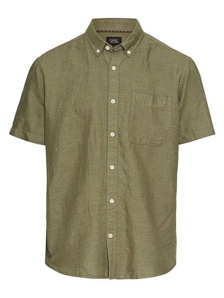 – z dodatkiem lnu- fason: regular fit- kołnierz: button-down- zapięcie: listwa guzikowa- kieszenie: na piersi- wzór: melanżowy