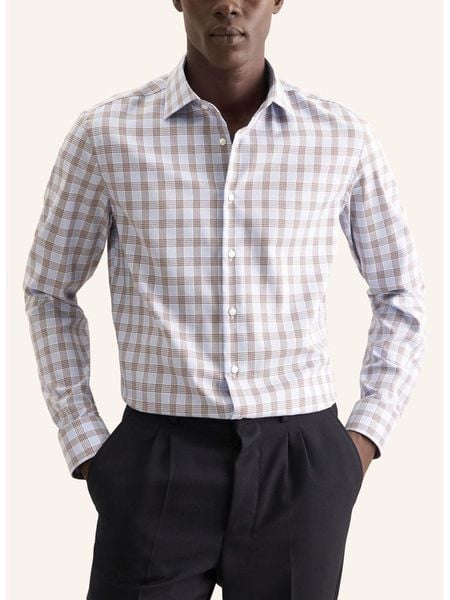 – czysta bawełna- kołnierz: kent- zapięcie: listwa guzikowa- długość rękawa: długi- zakończenie rękawów: mankiet na guzik- dolny brzeg: zaokrąglony- wzór: kratka