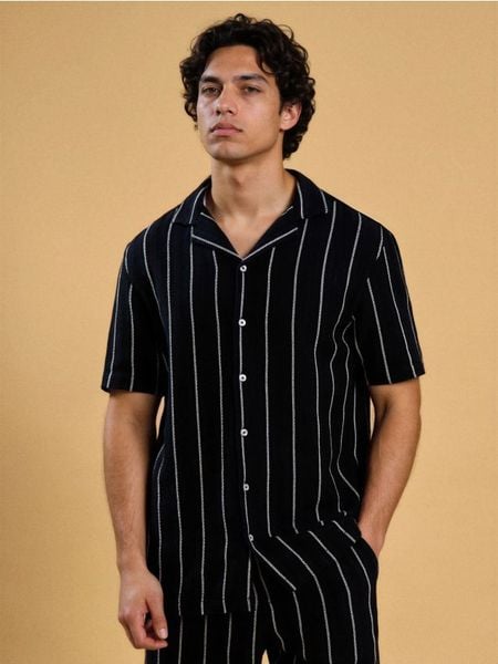 Sinsay – Bawełniana koszula w paski – granatowy –