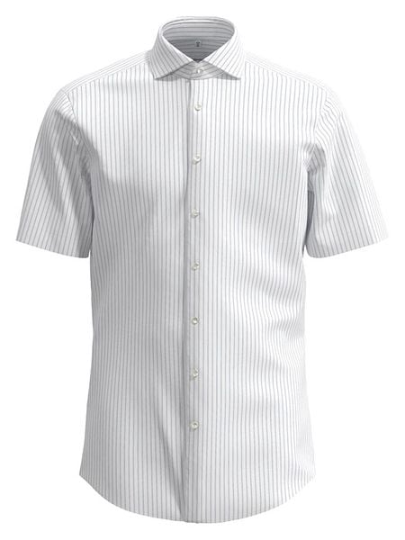 – czysta bawełna- kołnierz: kent- zapięcie: listwa guzikowa- długość rękawa: krótki- dolny brzeg: zaokrąglony- wzór: paski