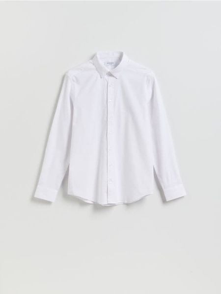 Koszula o dopasowanym kroju, wykonana z bawełnianej tkaniny.
