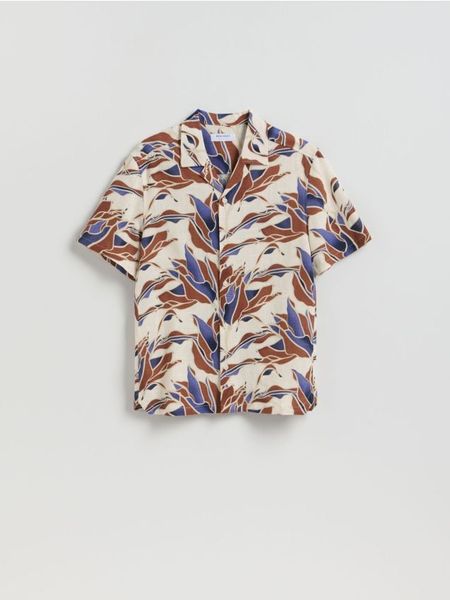 Koszula o regularnym kroju, wykonana z wiskozy i lnu.