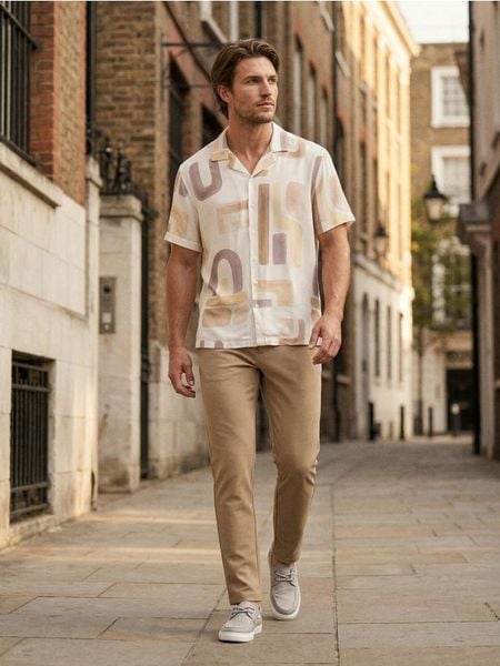 Wiskozowa koszula z abstrakcyjnym wzorem – kremowy
