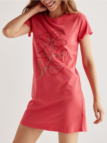 Koszula nocna o swobodnym fasonie, wykonana z bawełnianej dzianiny.