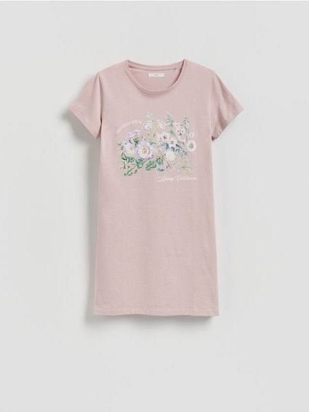 Koszula nocna o prostym kroju, wykonana z bawełnianej dzianiny.