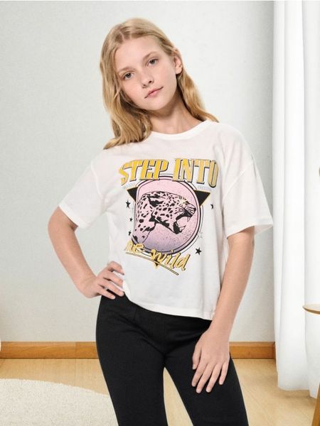 Sinsay – Koszulka ze zwierzęcym nadrukiem – kremowy –