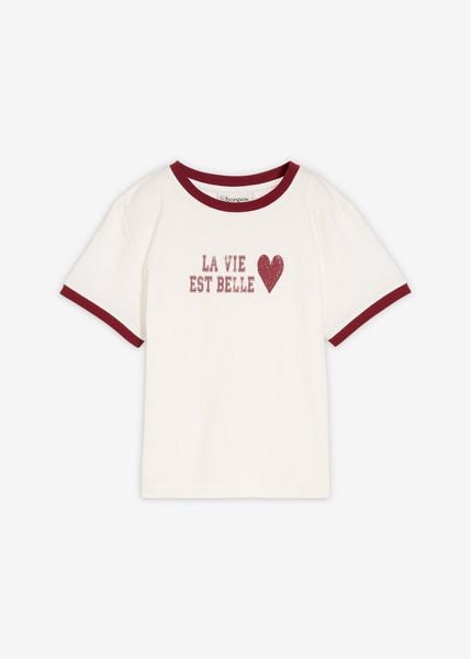 Modny dziewczęcy T-shirt z kontrastową lamówką.