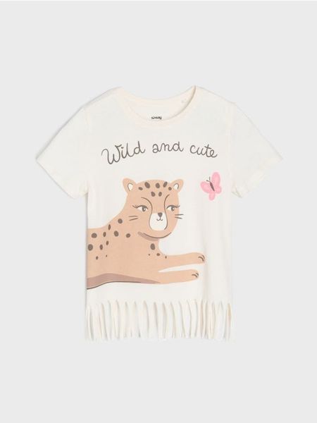 Sinsay – Koszulka ze zwierzęcym nadrukiem wykończona frędzlami – kremowy –