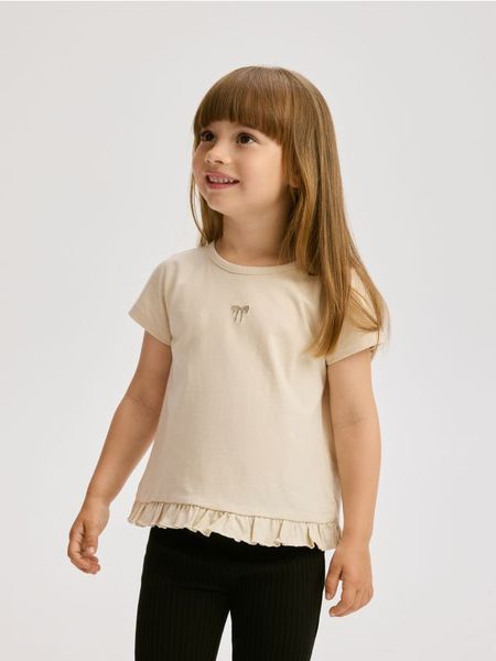 Bawełniany t-shirt z falbanką – beżowy