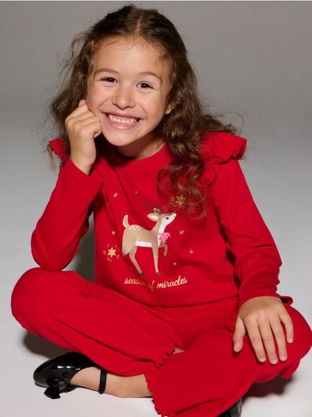 Sinsay – Bawełniana koszulka z nadrukiem świątecznym – czerwony –