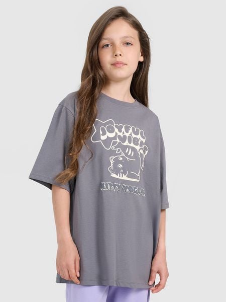 4F T-shirt oversize z nadrukiem dziewczęcy – szary 164 (13-14 lat)