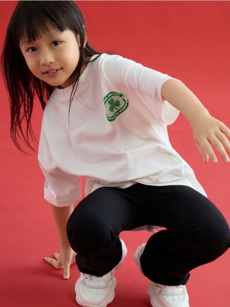 T-shirt o swobodnym fasonie, wykonany z bawełnianej dzianiny.