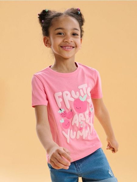 Koszulka z ozdobnym nadrukiem na przodzie – różowy