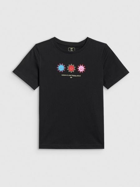 4F T-shirt regular z nadrukiem dziewczęcy – czarny 140 (9-10 lat)