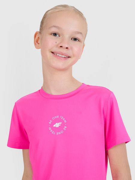 4F T-shirt sportowy regular gładki dziewczęcy – różowy 134/140 (8-10 lat)