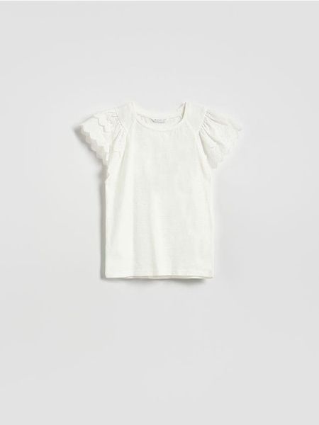 T-shirt z haftem na rękawach – złamana biel